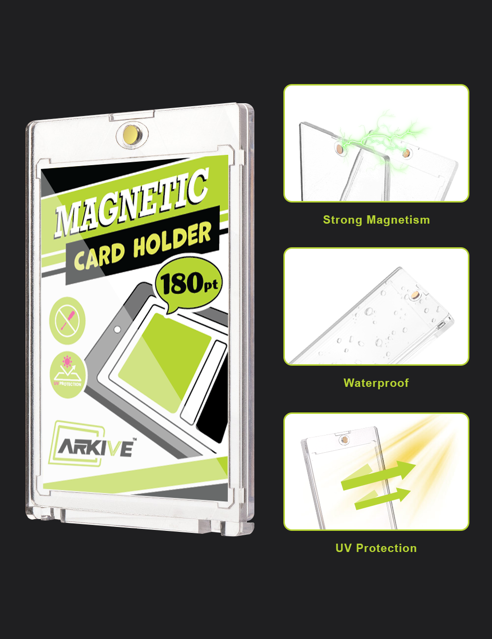 ✔ UV防護塗層 – 特殊鍍膜減少光照,防止卡片褪色,同時保持超高透明度。